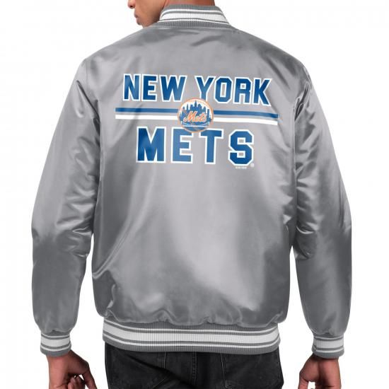 ニューヨーク・メッツ スターター プリント チーム ロゴ サテン ヴィーシティ フル-スナップ ジャケット - グレーは、メジャーリーグ公認のMLBグッズです。