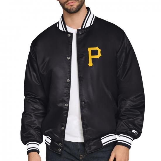 商品説明 ピッツバーグ・パイレーツ スターター ホーム プレート プリント グラフィック サテン フル-スナップ ヴィーシティ ジャケット - ブラックは、メジャーリーグ公認のMLBグッズです。