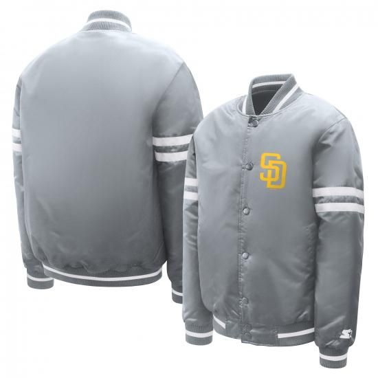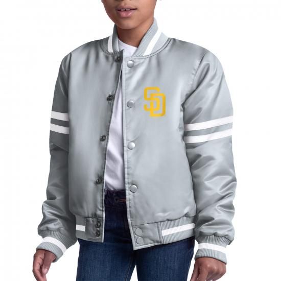 サンディエゴ・パドレス スターター ユース チーム ロゴ フル-スナップ サテン ヴィーシティ ジャケット - グレーは、メジャーリーグ公認のMLBグッズです。