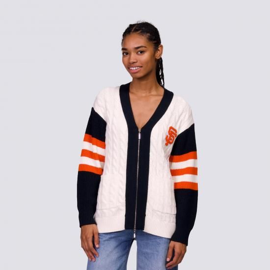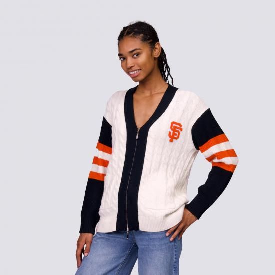 サンフランシスコ・ジャイアンツ Lusso レディース Shyla ニット Vネック フル-ジップ セーター - ブラック/ホワイトは、メジャーリーグ公認のMLBグッズです。