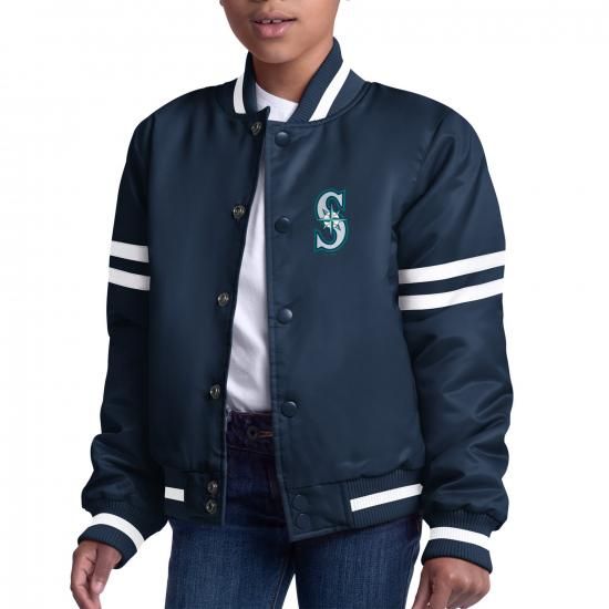シアトル・マリナーズ スターター ユース チーム ロゴ フル-スナップ サテン ヴィーシティ ジャケット - ネイビーは、メジャーリーグ公認のMLBグッズです。
