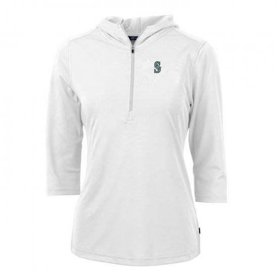 シアトル・マリナーズ Cutter &Buck レディース Virtue Eco ピケ 3/4 スリーブ ハーフジップ プルオーバー パーカー - ホワイトは、メジャーリーグ公認のMLBグッズです。