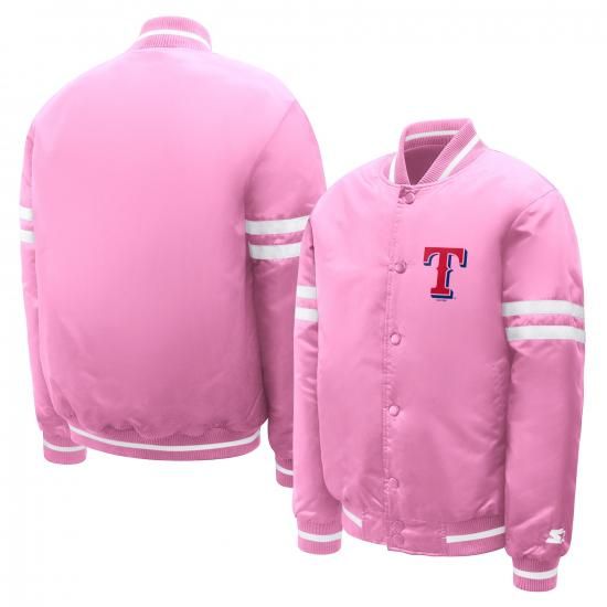 テキサス・レンジャーズ スターター ユース チーム ロゴ フル-スナップ サテン ヴィーシティ ジャケット - ピンクは、メジャーリーグ公認のMLBグッズです。