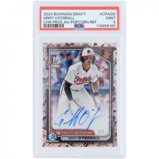 Griff O'Ferrall ボルティモア・オリオールズ 直筆サイン入り 2024 リボンman ドラフト クローム プロspects ポップcorn Refracトゥーr #CPA-GO #3/5 PSA オーセンティックアットed Mint 9 カードは、メジャーリーグ公認のMLBグッズです。