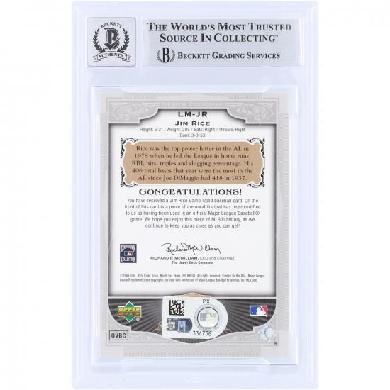 ジム・ライス ボストン・レッドソックス 直筆サイン入り 2006 アッパーデッキ社 SP レジェンドary カットs レジェンドary マテリアルs Relic ゴールド #LM-JR #/225 Beckett ファナティクス Witnessed オーセンティックアットed 10 カードは、メジャーリーグ公認のMLBグッズです。