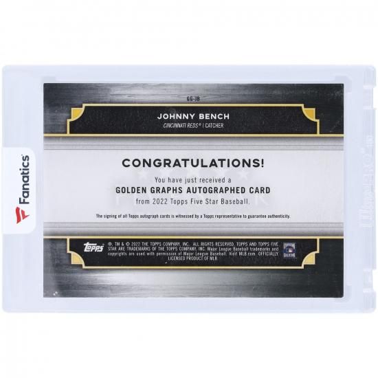 ジョニー・ベンチ シンシナティ・レッズ 直筆サイン入り 2022 トッププレーヤー Five Star ゴールデン Graphs #GG-JB #14/30 カードは、メジャーリーグ公認のMLBグッズです。