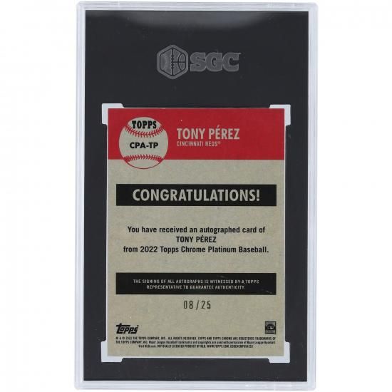 トゥーny Perez シンシナティ・レッズ 直筆サイン入り 2022 トッププレーヤー クローム Plアットinum アニバーサリー オレンジ Refracトゥーr #CPA-TP #8/25 SGC オーセンティックアットed 9.5/10 カードは、メジャーリーグ公認のMLBグッズです。