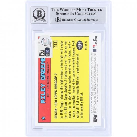 Riley グリーンe デトロイト・タイガース 直筆サイン入り 2023 トッププレーヤー TBT デザイン: '90 Robocop 2 #112 Beckett ファナティクス Witnessed オーセンティックアットed 10 ルーキー カードは、メジャーリーグ公認のMLBグッズです。