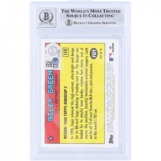 商品説明 Riley グリーンe デトロイト・タイガース 直筆サイン入り 2023 トッププレーヤー TBT デザイン: '90 Robocop 2 #112 Beckett ファナティクス Witnessed オーセンティックアットed 9/10 ルーキー カードは、メジャーリーグ公認のMLBグッズです。