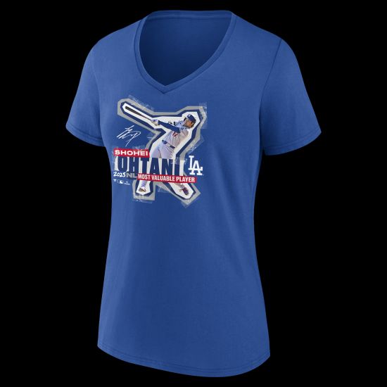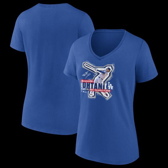 大谷翔平 ロサンゼルス・ドジャース レディース 2025 ナショナル リーグ MVP Vネック Tシャツ - ロイヤルは、メジャーリーグ公認のMLBグッズです。