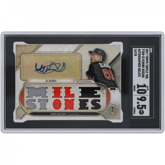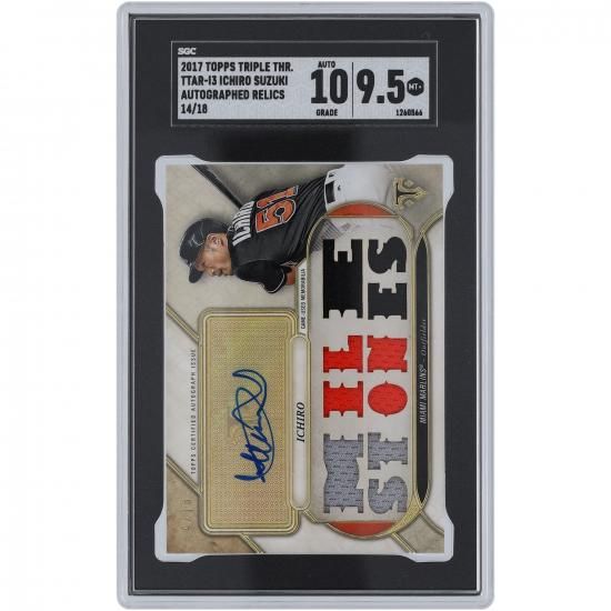 商品説明 イチロー マイアミ・マーリンズ 直筆サイン入り 2017 トッププレーヤー トリプル スレーズ トリプル トリカラー Relic #TTAR-13 #14/18 SGC オーセンティックアットed 9.5/10 カードは、メジャーリーグ公認のMLBグッズです。