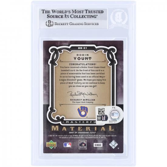 ロビン・ヨーント ミルウォーキー・ブルワーズ 直筆サイン入り 2007 アッパーデッキ社 SP レジェンドary カットs Maスターful マテリアルs GU Relic #MM-RY Beckett ファナティクス Witnessed オーセンティックアットed カードは、メジャーリーグ公認のMLBグッズです。