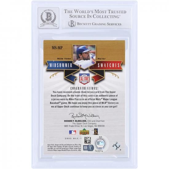 マイク・ピアッツァ ニューヨーク・メッツ 直筆サイン入り 2005 アッパーデッキ社 オールスター クラシックs ミッドsummer Swアットches GU Relic #MS-MP Beckett ファナティクス Witnessed オーセンティックアットed 10 カードは、メジャーリーグ公認のMLBグッズです。