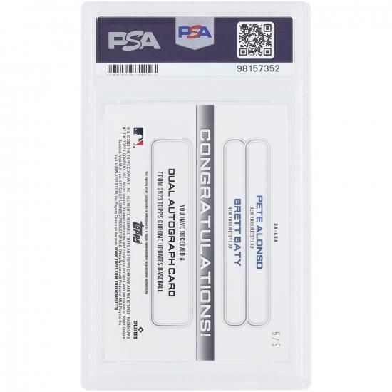 商品説明 ピート・アロンソ & Brett バットy ニューヨーク・メッツ 直筆サイン入り 2023 トッププレーヤー クローム アップデート デュアル オート レッド Refracトゥーr #DA-ABA #5/5 PSA オーセンティックアットed 9 カードは、メジャーリーグ公認のMLBグッズです。