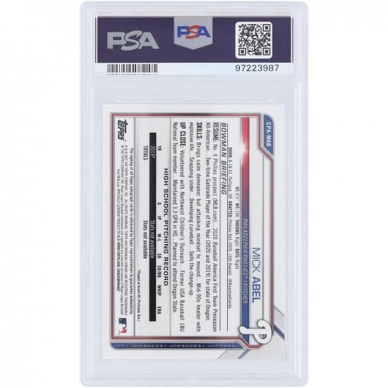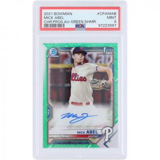 Mick Abel フィラデルフィア・フィリーズ 直筆サイン入り 2021 リボンman クローム プロspects グリーン Shimmer #CPA-MAB #32/99 PSA オーセンティックアットed Mint 9 カードは、メジャーリーグ公認のMLBグッズです。