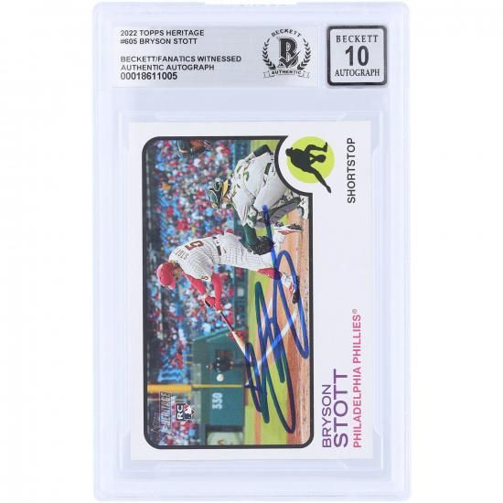 商品説明 Brysオン Sトゥーtt フィラデルフィア・フィリーズ 直筆サイン入り 2022 トッププレーヤー ヘリテージ #605 Beckett ファナティクス Witnessed オーセンティックアットed 10 ルーキー カードは、メジャーリーグ公認のMLBグッズです。