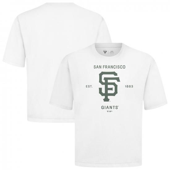 サンフランシスコ・ジャイアンツ レベルウエア Crossway オーバーサイズ Luxe シグネクチャー ニット Tシャツ - ホワイトは、メジャーリーグ公認のMLBグッズです。