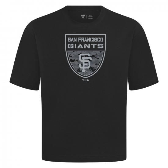 サンフランシスコ・ジャイアンツ レベルウエア オーバーサイズ Luxe シグネクチャー ニット バックルr Tシャツ - ブラックは、メジャーリーグ公認のMLBグッズです。