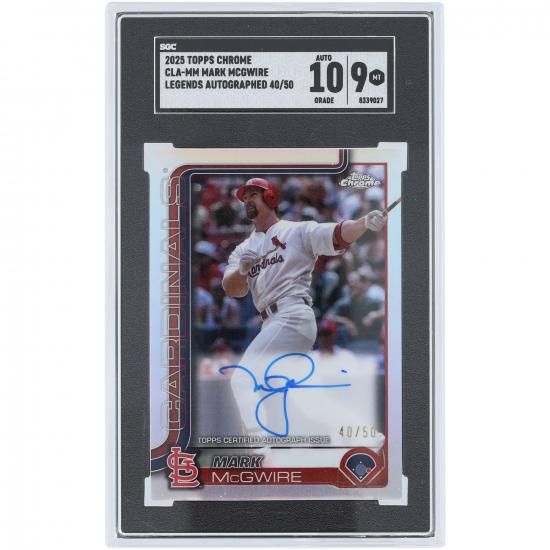 商品説明 Mark McGwire セントルイス・カージナルス 直筆サイン入り 2025 トッププレーヤー クローム レジェンドs Refracトゥーr #CLA-MM #40/50 SGC オーセンティックアットed 9/10 カードは、メジャーリーグ公認のMLBグッズです。