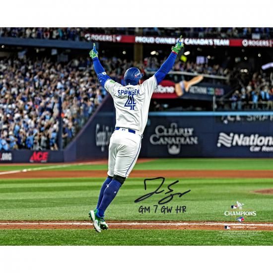 ジョージ・スプリンガー トロント・ブルージェイズ 直筆サイン入り ファナティクス オーセンティック 16" x 20" 2025 ALCS ゲーム 7 ゲーム-Winning ホームラン フォトグラフ with "GM 7 GW HR" インスクリプションは、メジャーリーグ公認のMLBグッズです。